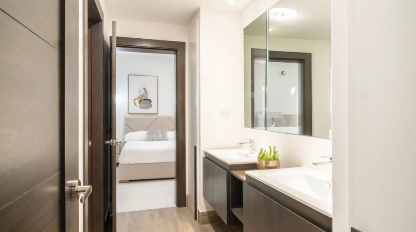 Todos los apartamentos cuentan con excelente distribución, iluminación natural, cocinas europeas modulares con tope de cuarzo, puertas en maderas preciosas y opción de línea blanca integrada.