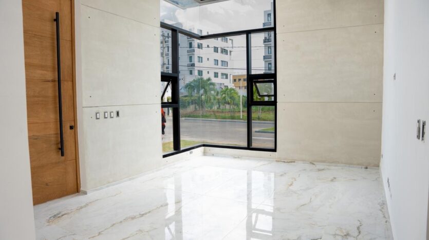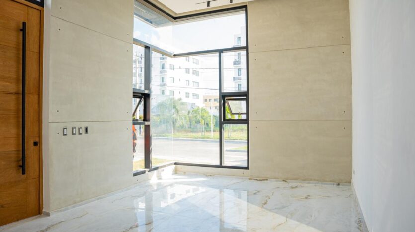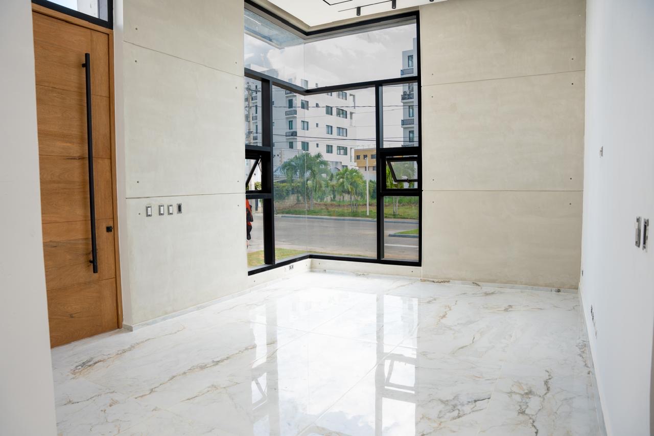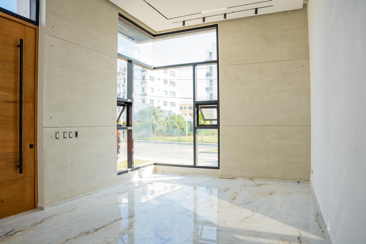 Ubicada en un residencial cerrado con seguridad 24/7, esta casa de un nivel te recibe con techos altos, una arquitectura que fluye con naturalidad, y espacios que aprovechan al máximo la luz natural.
